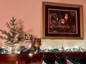 Not only did these sweet owls come home with me, but they roosted on my fireplace mantle through the fall, and I didn’t have the heart to remove them for Christmas, so they simply stayed. Whoooo would argue with that?